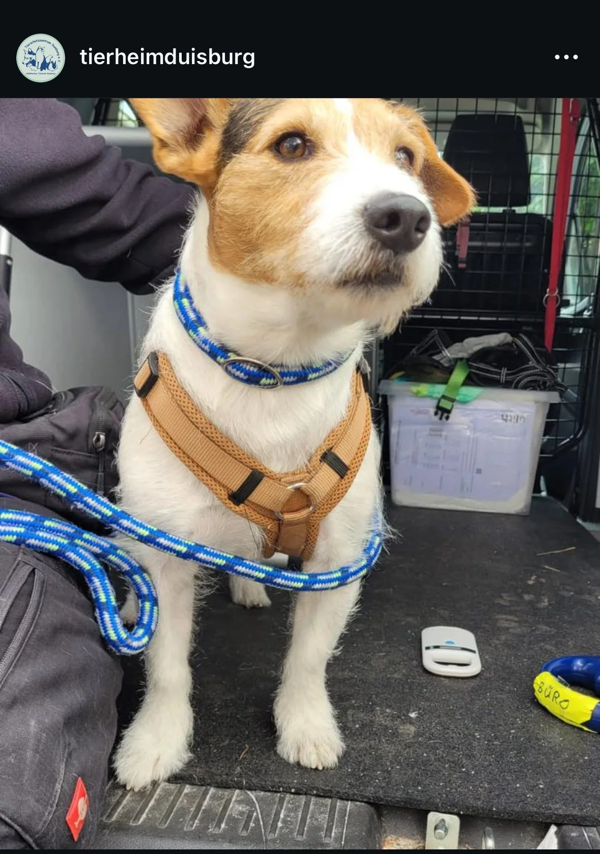 Das Foto hier zeigt Maxi an dem Tag, als er vom Tierheim Duisburg aufgenommen wurde. Er wurde zuvor ausgesetzt und streunte alleine durch Duisburg bis ihn das Tierheim rettete. Und damit begann seine Reise zu uns.